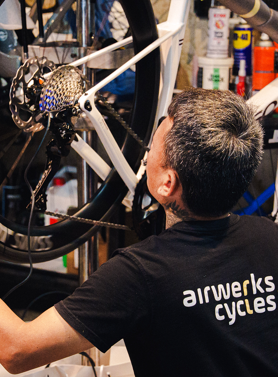 Airwerks Cycles workshop is geared up to handle anything that needs fixing on your bike and we specialize in preparing bikes for racing in road and triathlon. We love getting our hands dirty and fine-tuning your bike so you can get the maximum out of it in tough and punishing conditions. We provide a 30 days warranty covering the service procedures, include parts and the fitting of new parts.